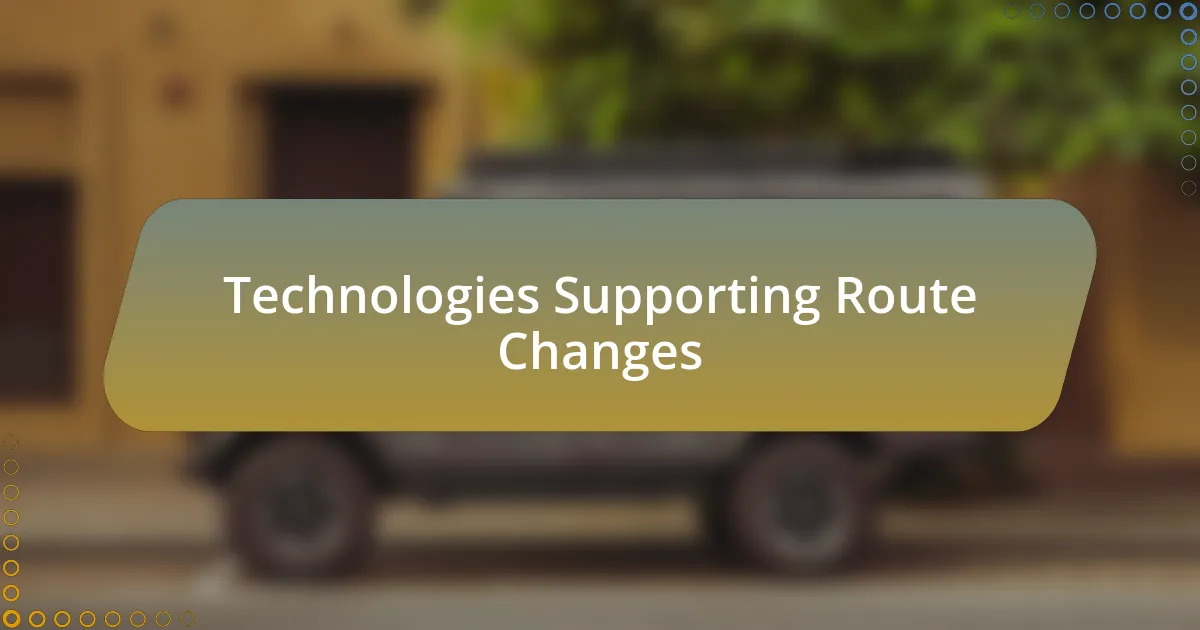 Technologies behind route changes play a crucial role in enhancing our travel experience. For example, GPS technology has revolutionized navigation. I still remember driving on a busy route when my GPS suddenly recalibrated, offering me an alternative path to skip the gridlock. It felt like having a personal guide who understood my need to get to my destination without the stress of being stuck in traffic.