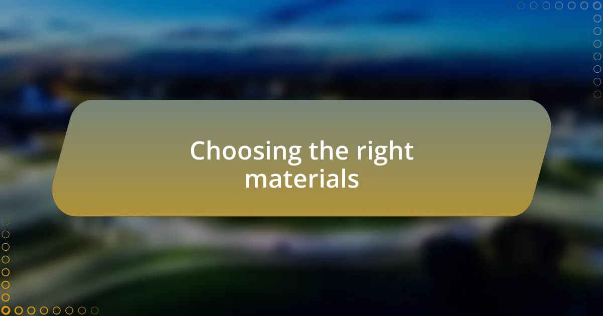 Choosing the right materials for my robot was a pivotal phase that required careful consideration. I remember standing in the hardware store, feeling both excited and overwhelmed by the array of options. Should I go with lightweight plastics for mobility or heavier metals for durability? Every choice felt consequential, shaping the very essence of my creation.
