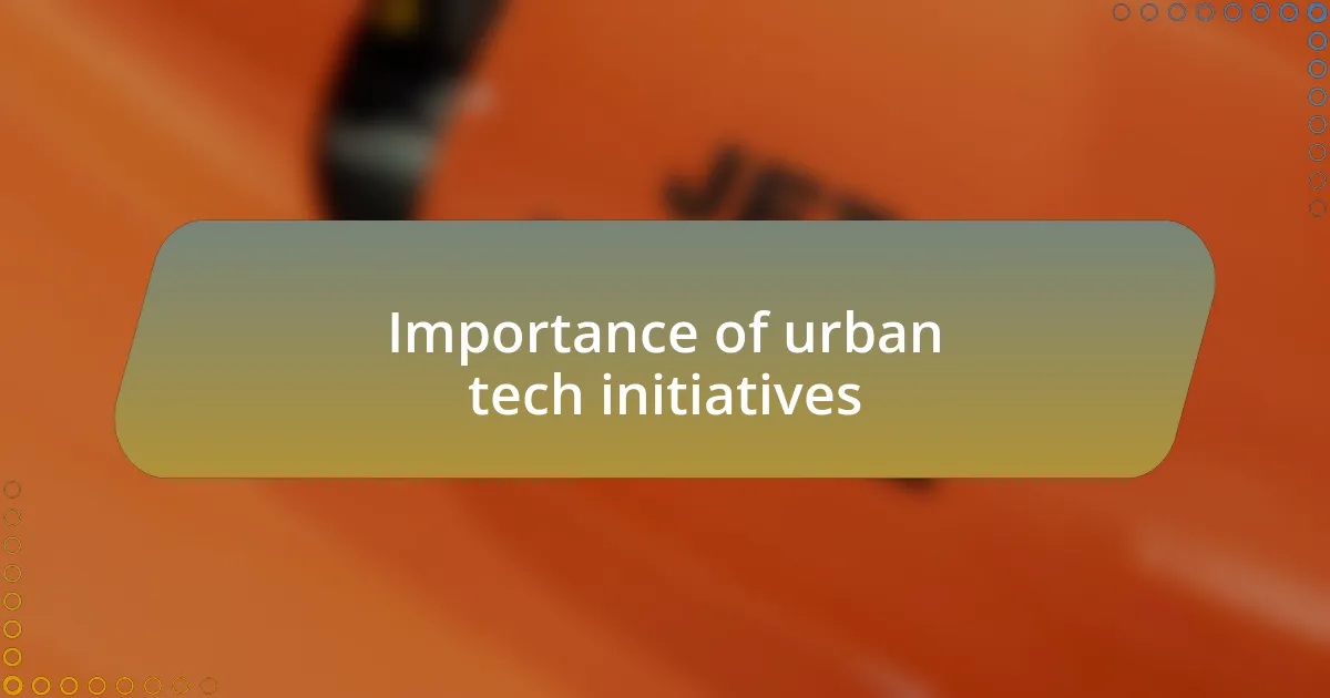 Urban tech initiatives play a pivotal role in shaping the quality of life within our cities. I’ve witnessed firsthand how smart urban solutions, such as sensor-based waste management systems, can address daily nuisances. Imagine walking through a neighborhood where bins are emptied only when full—this not only reduces litter but also cuts operational costs. It’s exciting to think about how such initiatives can foster a cleaner and more efficient urban environment.