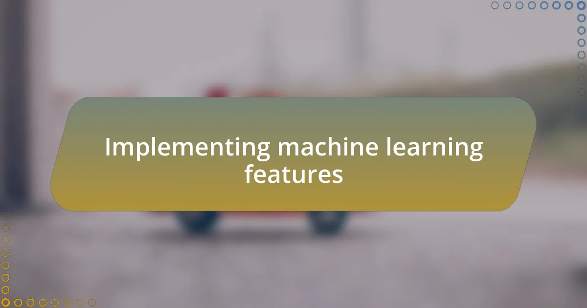 Implementing machine learning features was a game changer for my personal assistant bot. I remember the excitement of integrating natural language processing (NLP) algorithms, which significantly improved how the bot understood and responded to user queries. Watching it learn from interactions felt like witnessing a child grow; every conversation added to its understanding and capability. Isn’t it incredible how machines can evolve their intelligence through experience, much like we do?