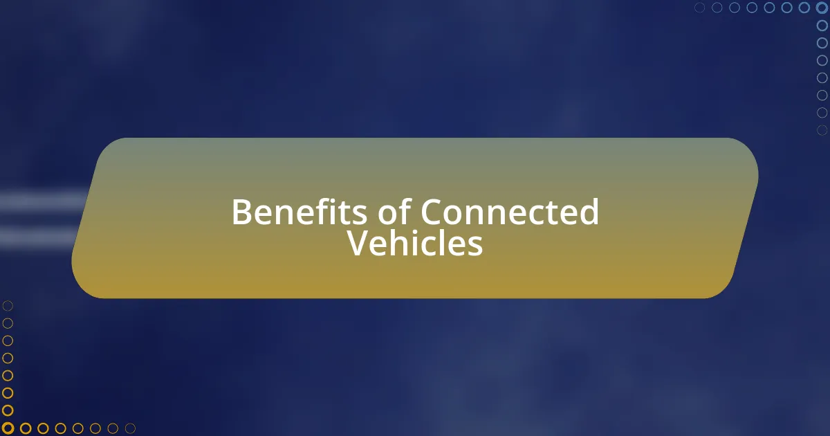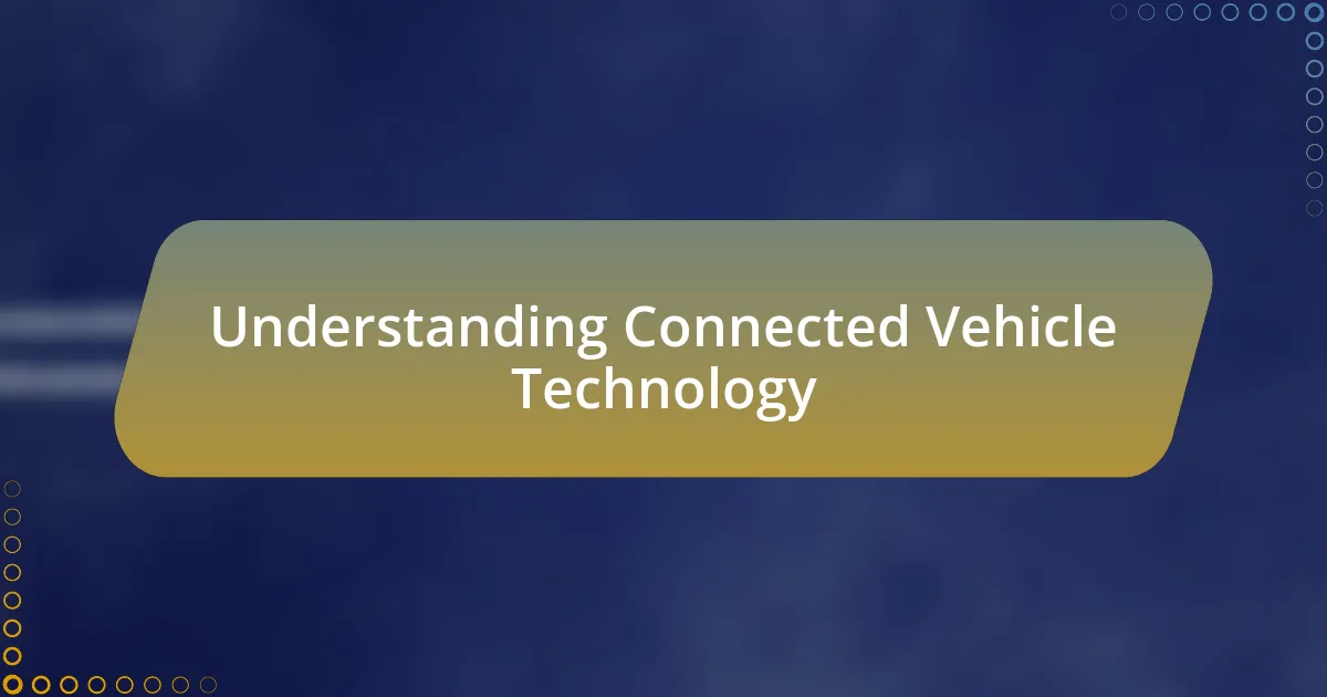 Connected vehicle technology is a game changer in how we think about transportation. Just imagine your vehicle sharing vital information with other cars and traffic signals. I recall a time when I was caught in a sudden downpour, and traffic lights malfunctioned, causing chaos. How different would that experience be if our vehicles could instantly communicate and adjust to ensure safety?