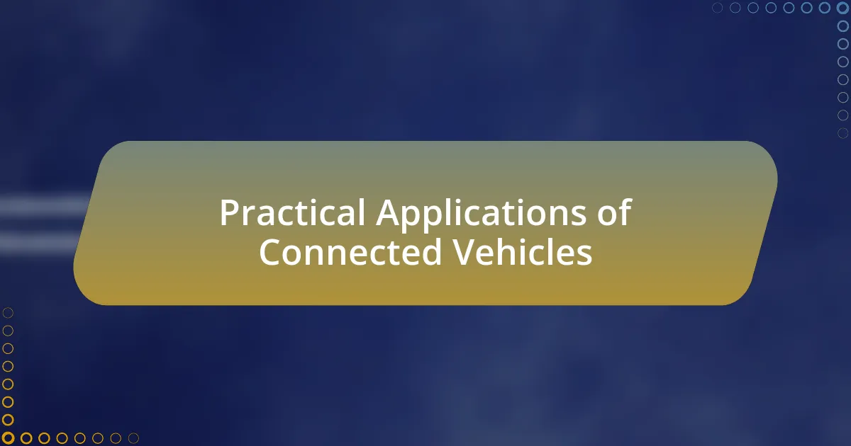 - Practical applications of connected vehicles include adaptive cruise control and smart parking solutions, which improve convenience and reduce congestion.