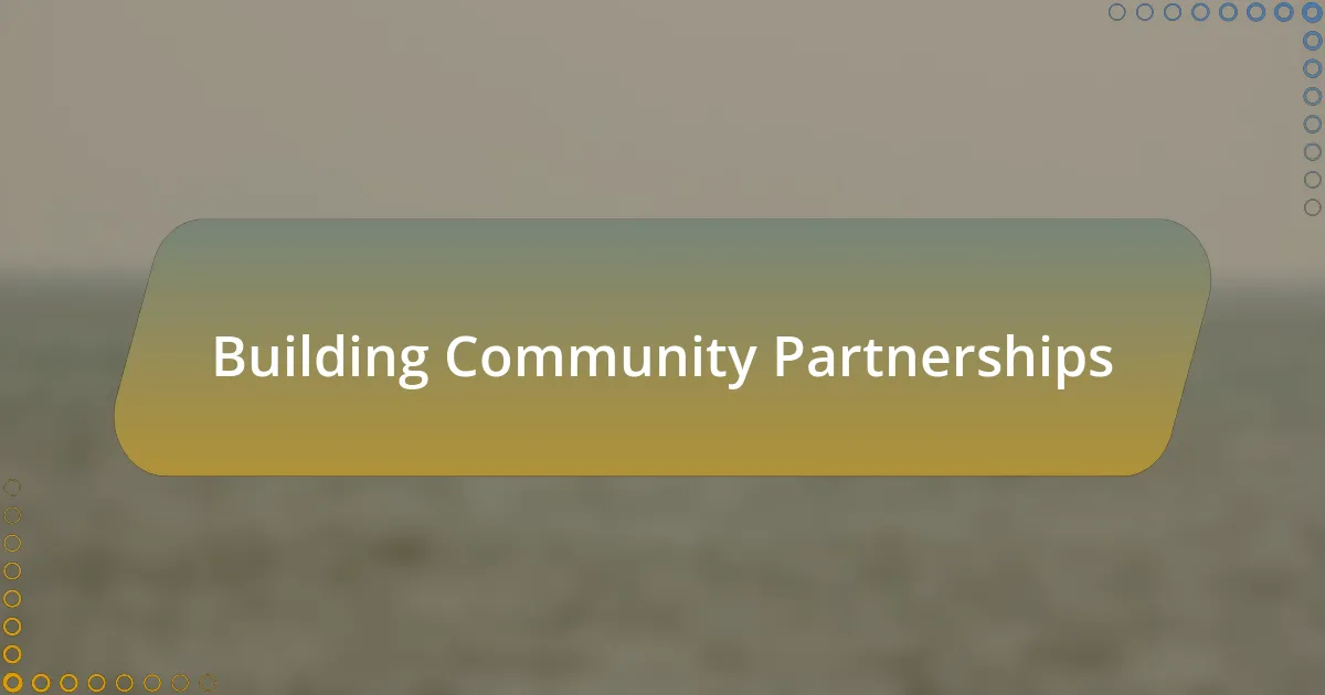 Building community partnerships is essential for effective transit advocacy. I recall when our local advocacy group teamed up with a nearby university to conduct a survey about public transit needs. The results not only represented the voices of students but also revealed some surprising gaps in service that had been overlooked. Wouldn’t it be incredible if we could harness the insights from various community sectors to create robust transit solutions?