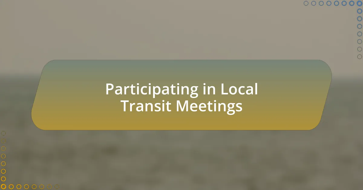Participating in local transit meetings opens the door to vital discussions about our community’s needs. I remember attending a city council meeting where the topic of transit routes was on the agenda. Listening to the concerns from residents who relied on public transportation was eye-opening. It made me realize how our voices can drive real change when we come together in such spaces.