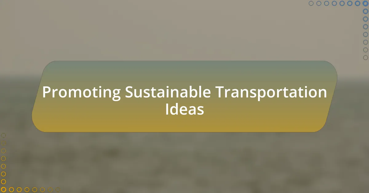 Promoting sustainable transportation ideas is not just about policies; it’s about community. I’ve often found that organizing local bike rides can spark interest in alternatives to car travel. Just last summer, we held an event that attracted a mix of families and young professionals. Watching them exchange stories about their commuting experiences transformed the atmosphere into one of hope and excitement—common goals became visible in those shared moments.