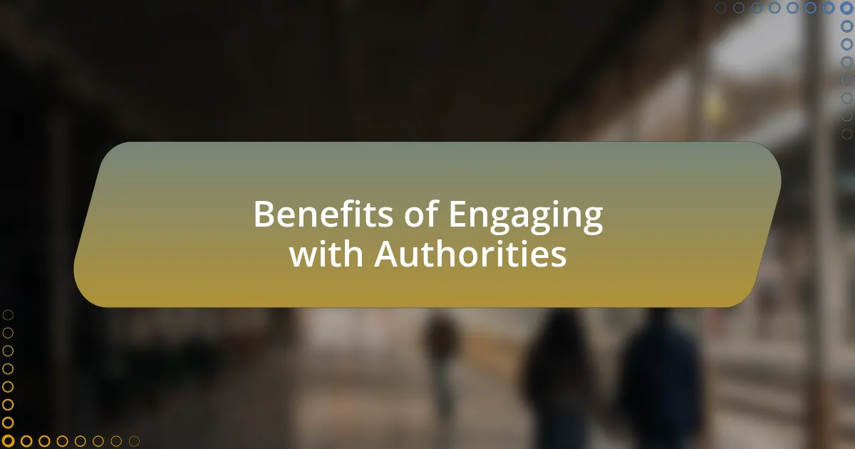 Engaging with traffic authorities offers significant advantages for individuals and communities. When I participated in a collaboration with local traffic officials, I realized how crucial their insights are in shaping transportation policies. The dialogue not only promoted transparency but also fostered a sense of shared responsibility among stakeholders. Isn’t it inspiring to see citizens and authorities working together toward a common goal?