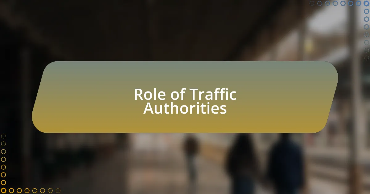 Traffic authorities play a vital role in orchestrating the complex systems that keep our roads safe and efficient. I recall attending a local town hall meeting where officials discussed their strategies for traffic flow management. It struck me how these authorities not only monitor traffic conditions but also leverage data analytics to predict congestion patterns and make informed decisions. Isn’t it remarkable how proactive interventions can transform the daily journey for countless commuters?