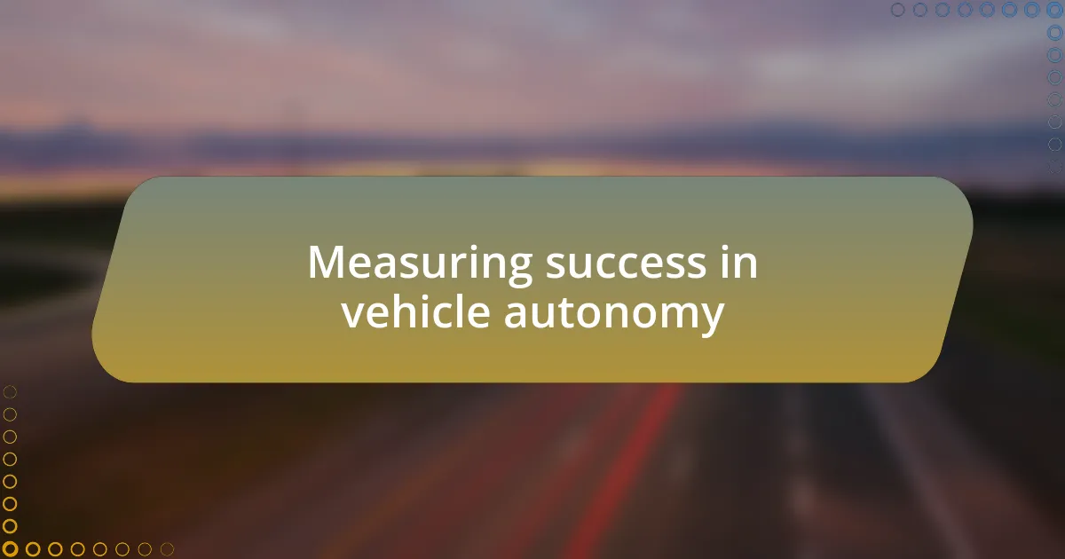 Measuring success in vehicle autonomy requires a multi-faceted approach. One key indicator I’ve found invaluable is the accuracy of predictive algorithms. During a project rollout, I was amazed when we tracked the system’s ability to anticipate pedestrian movement with 95% accuracy. It made me think: how much more confident would drivers feel knowing their vehicle could foresee unpredictable actions?
