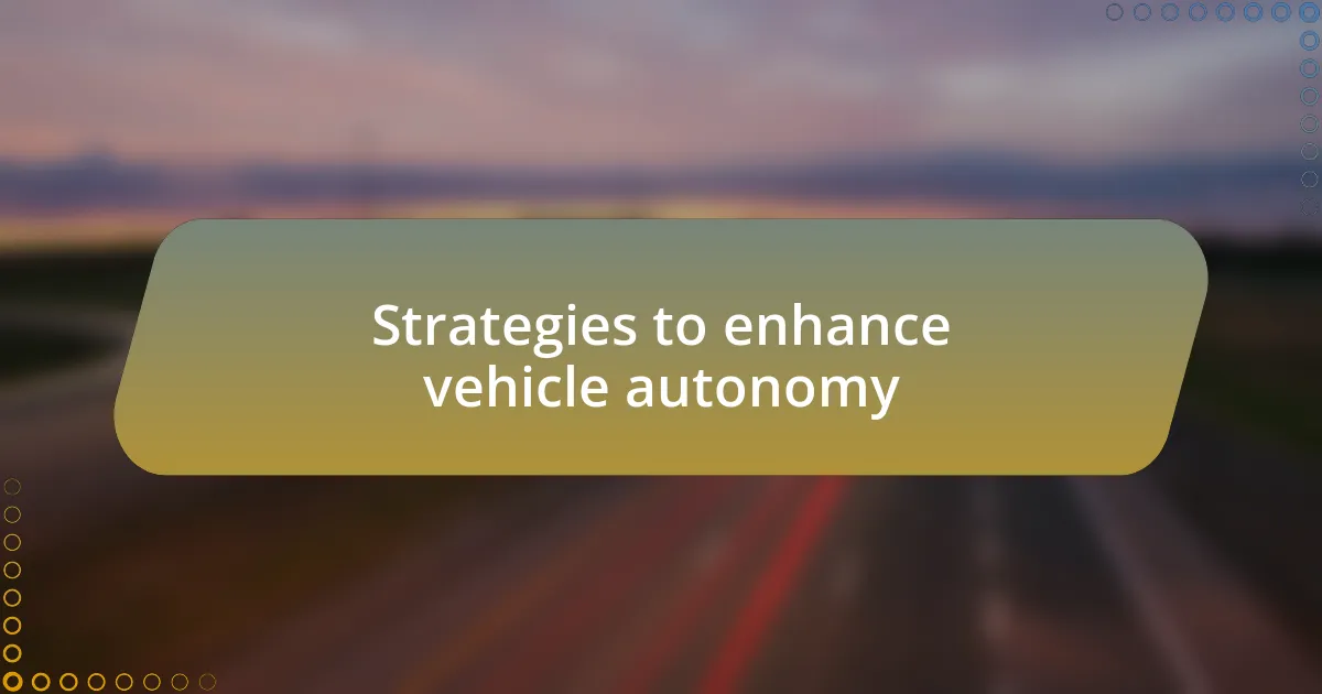 One effective strategy to enhance vehicle autonomy involves refining the algorithms that power decision-making processes. I once collaborated on a project where we adjusted these algorithms to simulate various driving conditions. The results were eye-opening—vehicles became more adept at navigating complex scenarios, which made me realize how crucial it is to continuously iterate on these systems. How else can we ensure safety and efficiency in unpredictable environments?