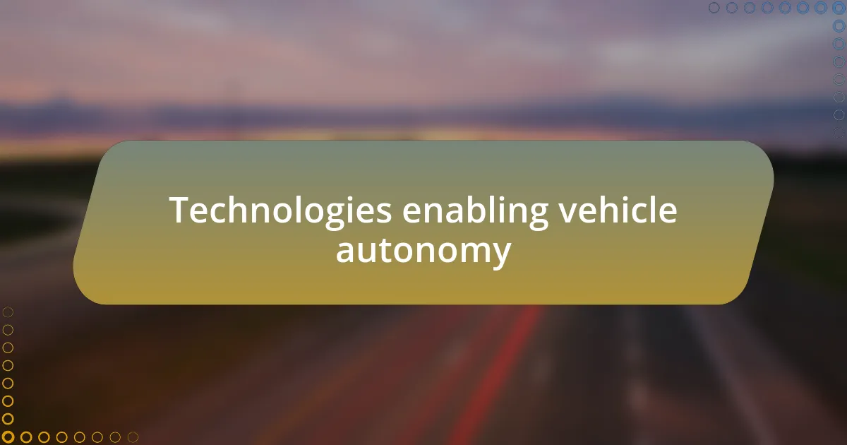 - Key enabling technologies for autonomy include sophisticated sensors like LiDAR, AI for data processing, and V2V/V2I communication for better traffic management.