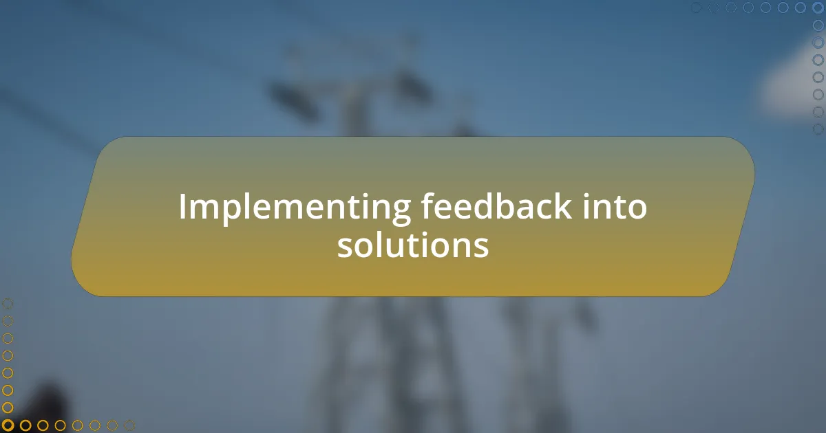 Implementing feedback into solutions requires a genuine commitment to listening and adapting. After collecting insights from community forums, I found it crucial to prioritize those suggestions that genuinely reflected shared concerns. For instance, I remember receiving feedback about unsafe crosswalks near a busy park. By incorporating this specific input into our traffic solution plans, it was gratifying to see how a simple reallocation of resources could enhance safety for children and families.