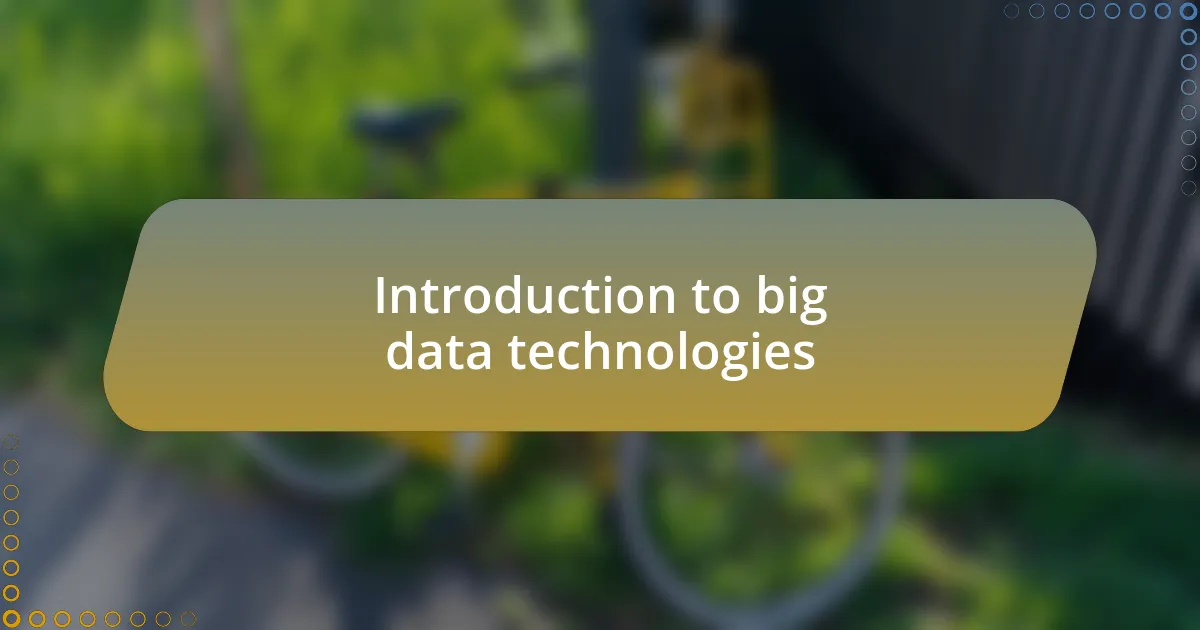 Big data technologies have revolutionized how we process and analyze vast amounts of information. I remember the first time I realized the potential of big data—it was during a project where we used real-time traffic data to optimize routes for delivery trucks. The ability to leverage such extensive datasets not only improved efficiency but also made me understand the true power of data-driven decision-making.