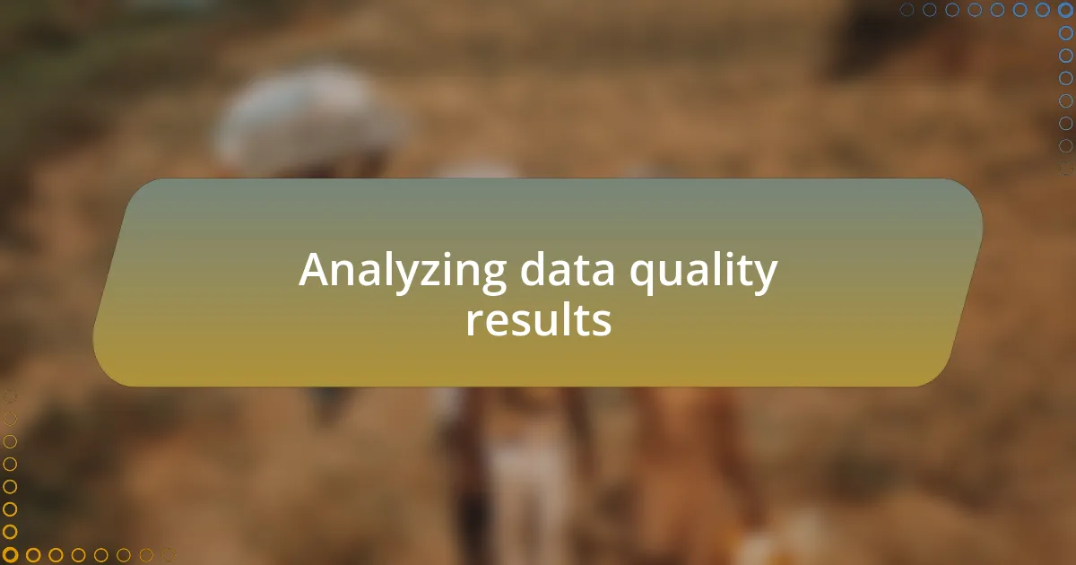Analyzing data quality results involves examining various metrics to determine how well your datasets meet established standards. In one instance, while evaluating data for a public transit project, I discovered discrepancies between reported ridership numbers and actual data. This eye-opening moment reinforced for me the importance of vigilance in monitoring data quality to ensure accurate analyses and informed decision-making.