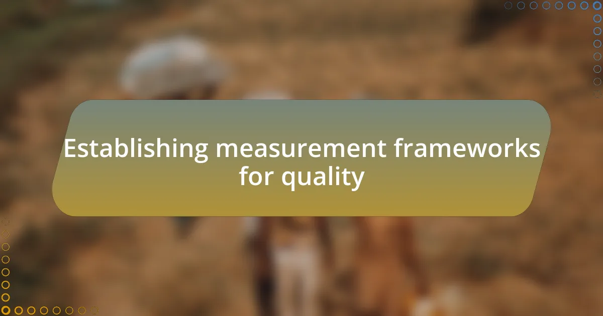 Establishing measurement frameworks for data quality starts with defining specific metrics that align with project goals. I remember the time when I implemented a framework for monitoring real-time traffic data in my city. By focusing on accuracy, completeness, and timeliness, I was able to create a clear structure that not only identified gaps but also provided actionable insights for city planners. What metrics would you choose to assess if you were in my shoes?