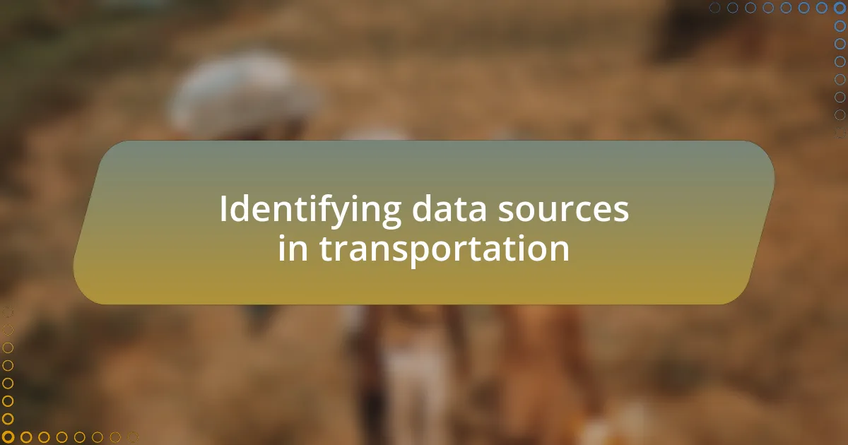 When identifying data sources in transportation, I find that a diverse array of information is crucial for a holistic view. For instance, during a project where I evaluated public transport efficiency, I combined GPS data from vehicles, camera feeds at intersections, and user feedback from mobile apps. This multi-source approach not only enriched our analysis but also illuminated patterns that one singular source would have easily overlooked. Isn’t it fascinating how different data points can tell a more comprehensive story when woven together?