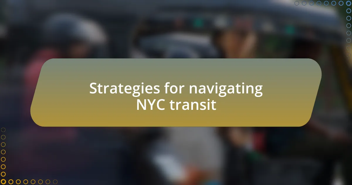 One effective strategy I found was to download a transit app specifically designed for NYC. On my early journeys, the app quickly became my best friend; it provided real-time updates and step-by-step directions. I still remember a particularly hectic morning when I relied on it to reroute my commute due to unexpected delays. The relief I felt when I arrived at my destination on time, despite the chaos, reinforced the importance of having reliable digital tools.