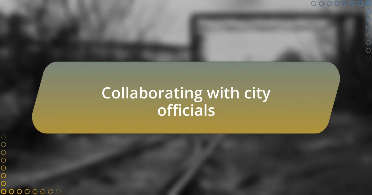 Building strong relationships with city officials has been pivotal in my journey. During one particularly insightful meeting, I realized that the officials weren’t just gatekeepers; they genuinely wanted to understand the impact of smart initiatives on their communities. I remember discussing how our intelligent transportation system could enhance local quality of life, and seeing their eyes light up as they started connecting the dots.
