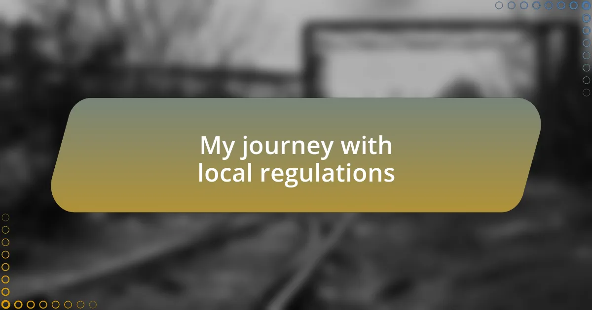 Navigating local regulations has been a journey in itself. I vividly remember a meeting with city officials where I presented our smart city proposal, only to face a barrage of questions about compliance and liability. It felt like walking a tightrope; one misstep could send my team tumbling back to square one. In those moments, I learned that being thoroughly prepared is key. Engaging with the regulations beforehand not only builds credibility but also fosters a sense of trust.