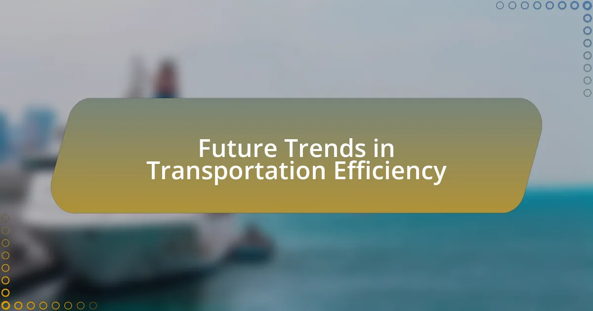 - Future trends in transportation efficiency focus on smarter connectivity, autonomous vehicles, and big data analytics to enhance fuel performance and reduce emissions.