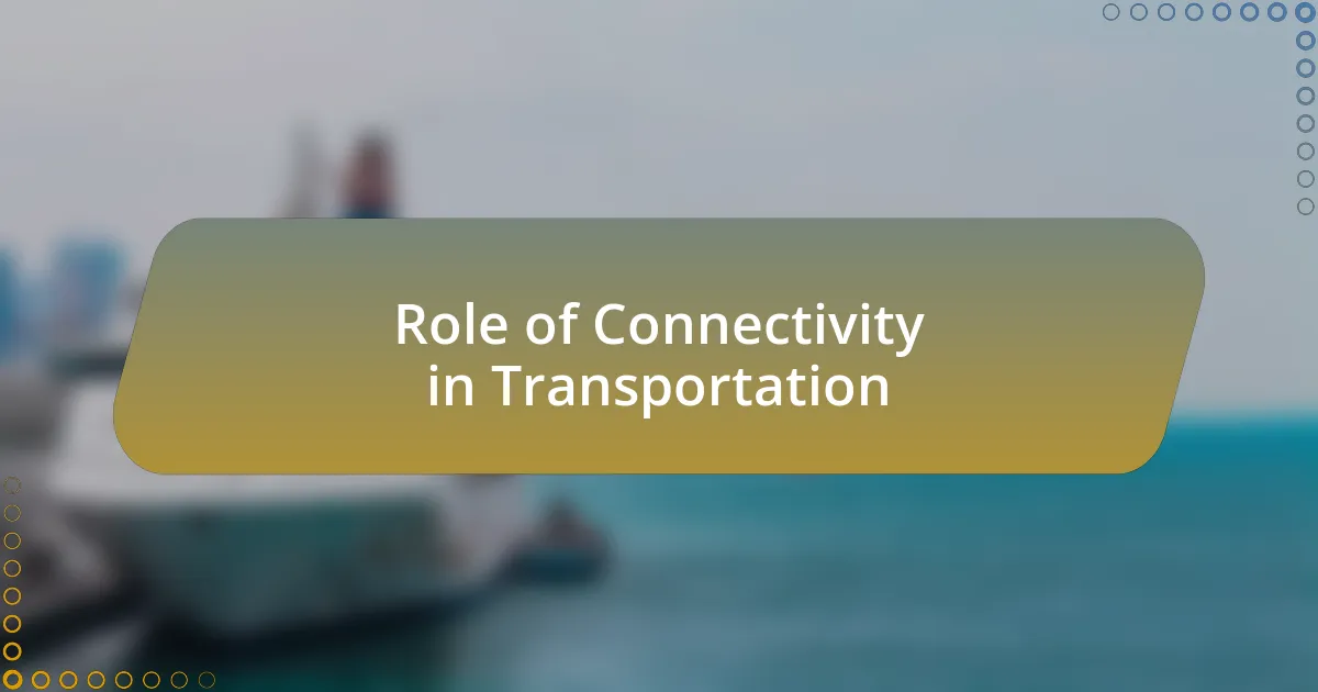 Connectivity plays a pivotal role in modern transportation systems by enabling seamless communication between vehicles, infrastructure, and users. I remember the first time I used a navigation app that adjusted my route in real-time based on traffic conditions; it saved me not just time but fuel as well. Have you ever thought about how that instant feedback can lead to more efficient driving routes and, ultimately, lower emissions?