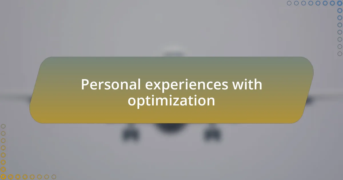 Another memorable optimization came from my exploration of propeller sizes. One afternoon, I experimented with different propellers, and it was like night and day. The new set created not only a quieter flight but also improved lift, allowing for more graceful aerial maneuvers. This experience taught me the importance of experimentation—have you ever thought about how small changes could lead to significant improvements in your own drone setup?