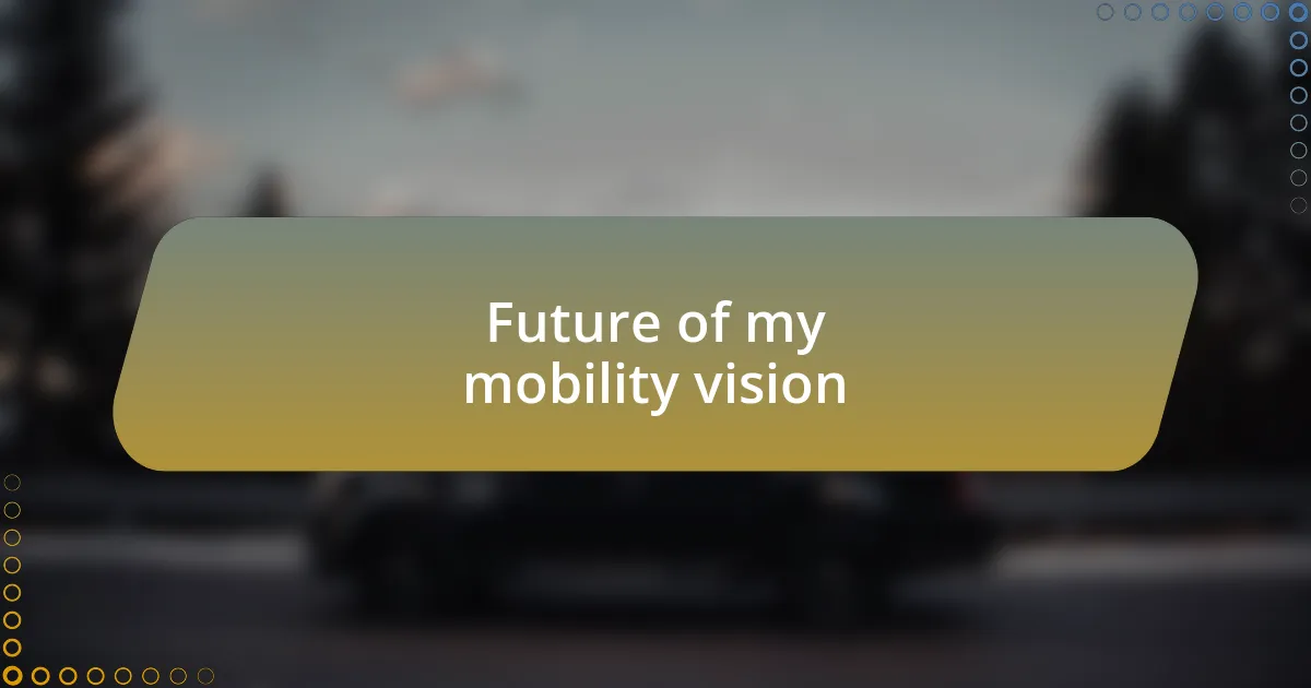I often reflect on how vital sustainability has become in mobility discussions. The vision for my future includes electric vehicles that not only reduce my carbon footprint but also provide energy-efficient routes that minimize congestion. I still remember the thrill of driving an electric car for the first time. It sparked a connection to my surroundings that I hadn’t felt before. Have you ever thought about how your choices can contribute to a cleaner environment while enhancing your mobility experience?