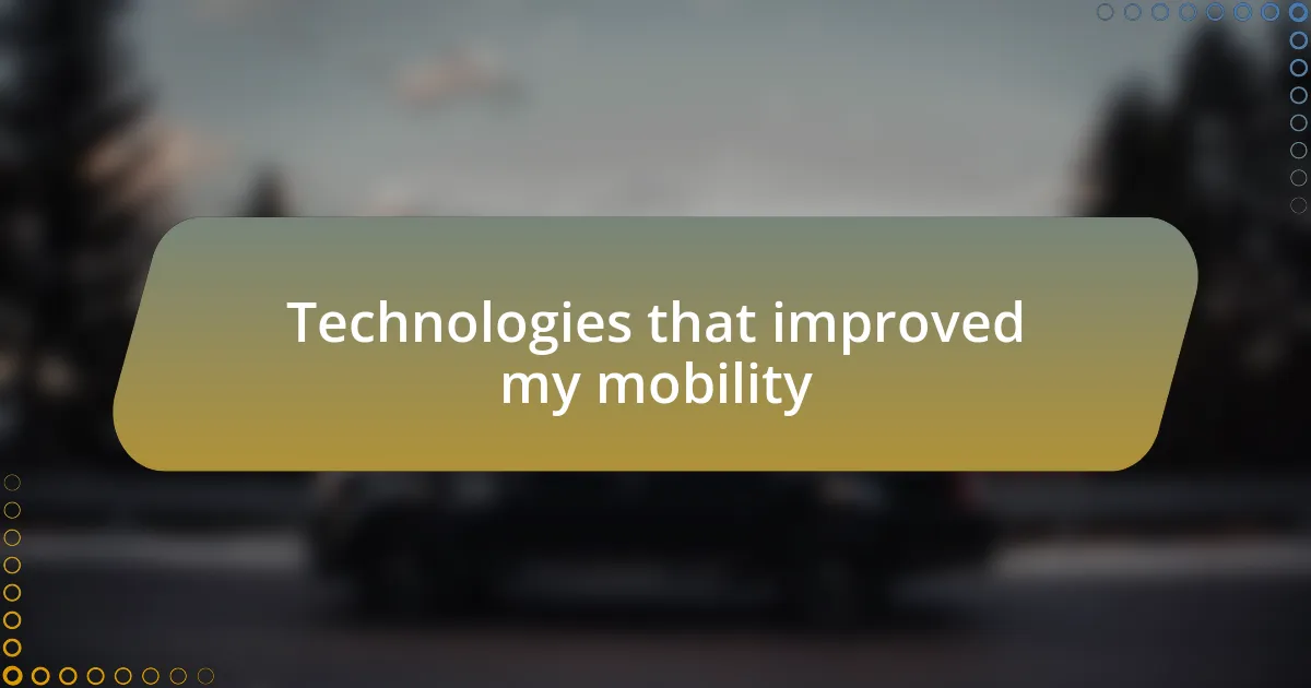 One of the standout technologies that markedly enhanced my mobility was the advent of navigation apps. I still remember the first time I used one on my smartphone. I was running late to a meeting and my usual route was suddenly jammed with heavy traffic. With just a few taps, my app rerouted me through side streets I wasn’t even aware existed, getting me to my destination much faster. Isn’t it amazing how technology transforms our everyday experiences in such a practical way?