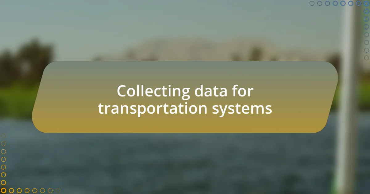 Collecting data for transportation systems is not only about numbers; it’s about understanding the flow of life in our cities. I can remember standing at a busy intersection, observing the ebb and flow of pedestrians and vehicles. It struck me that each moment captured by sensors and cameras tells a story about how people move, where they go, and what routes they prefer. Have you ever thought about how this data could help redesign a street or a bus route for better accessibility?