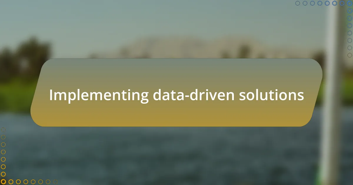 Implementing data-driven solutions requires a mix of technology and empathy. Once, while working on a smart traffic light system, we utilized real-time data to adjust signal timings based on actual vehicular flow. It struck me how this solution didn’t just optimize traffic; it significantly reduced stress for drivers and pedestrians alike. Have you ever felt that rush when a light turns green just as you approach? That’s the magic of timing, fueled by data.