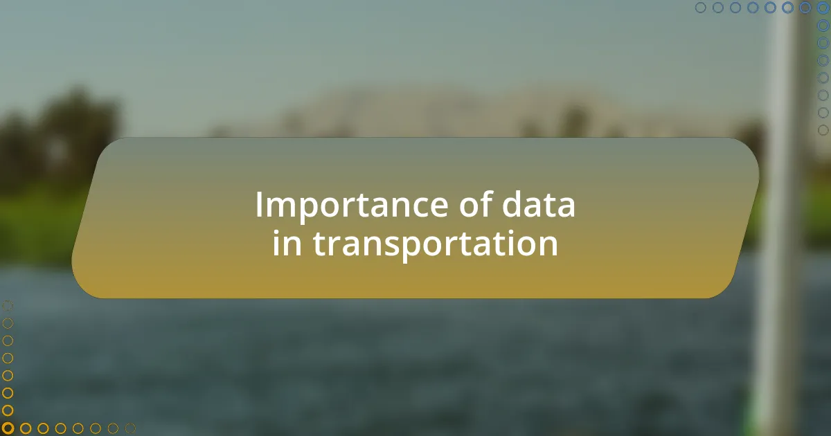 Data plays a crucial role in transforming transportation systems into efficient networks. I recall the first time I checked a live traffic app and avoided what could have been a 30-minute delay. Those real-time data points not only saved me time, but also highlighted the power of data in guiding our daily decisions on the road. How many of us would prefer to seamlessly flow through our commutes instead of getting stuck in bottlenecks?
