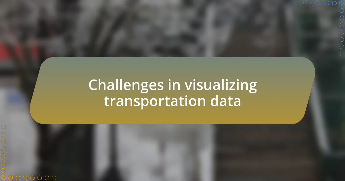 One significant challenge in visualizing transportation data is the sheer volume of information involved. I once worked with a dataset that included traffic patterns across an entire city, containing millions of data points. The task of distilling that into a coherent visual was daunting—how do you present such complexity without overwhelming your audience?