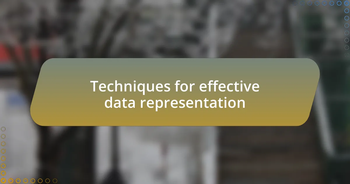 When it comes to effective data representation, I find that choosing the right visualization technique can profoundly impact understanding. For instance, I once opted for a heat map to illustrate traffic congestion levels across a city. The vibrant colors vividly showcased peak times and areas of concern, which not only caught the eye but also enabled stakeholders to grasp patterns at a glance—have you ever seen a single image spark a transformative discussion around fixing a major issue?