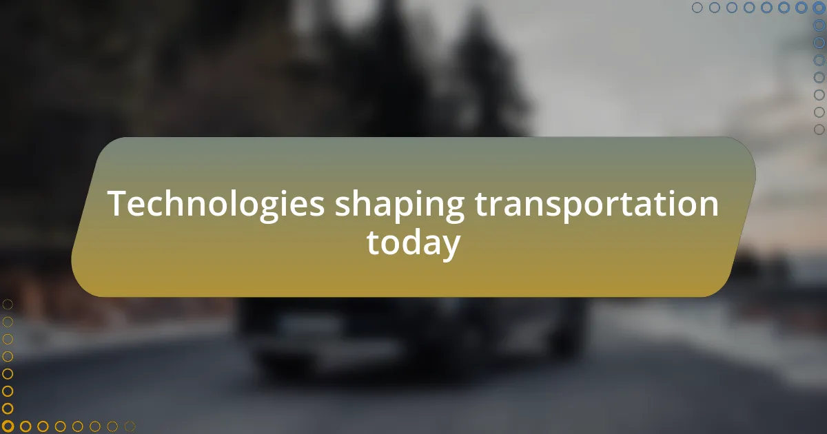 Technologies like connected vehicles and smart traffic management systems are revolutionizing how we approach transportation. I witnessed firsthand how these innovations can decrease congestion and enhance safety; I remember being impressed by a demonstration showing how real-time data can adjust traffic signals to optimize flow. It got me thinking: can these technologies fully eliminate gridlock in urban areas?