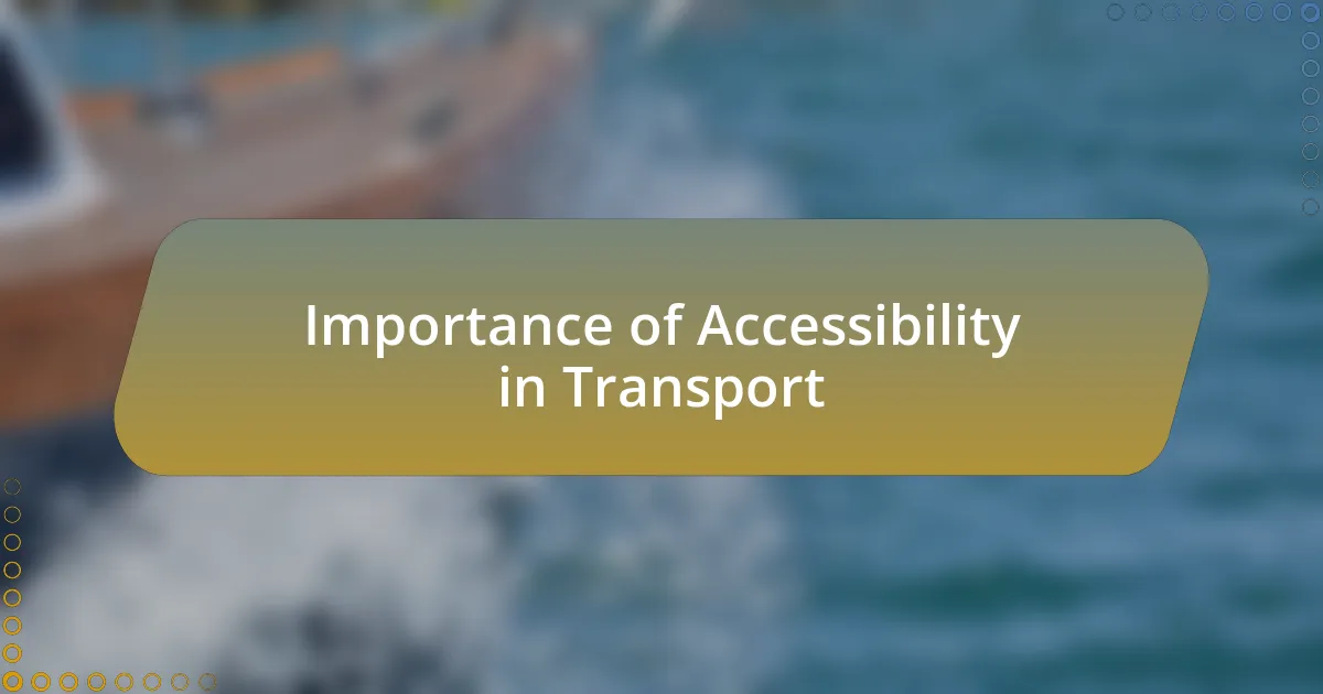 Accessibility in transport is vital for fostering equality and inclusivity. I’ve often witnessed how a single curb cut can transform the daily life of someone with mobility challenges, allowing them to navigate their community independently. It’s a simple change, yet its impact is profound—every individual deserves the freedom to travel without barriers.