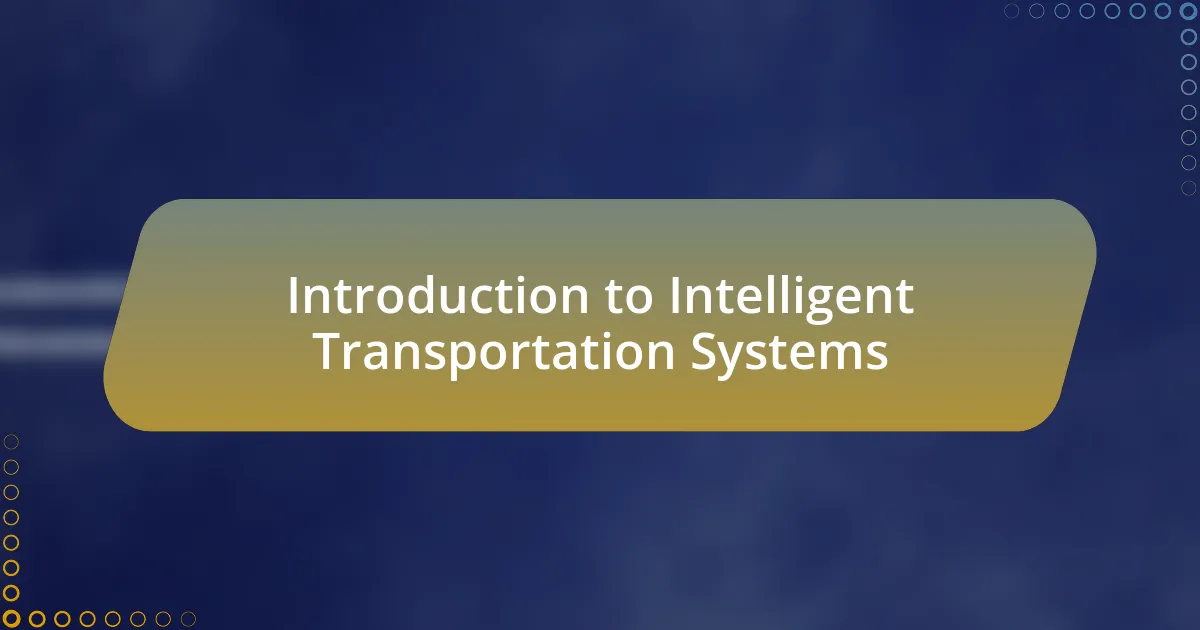 Introduction to Intelligent Transportation Systems