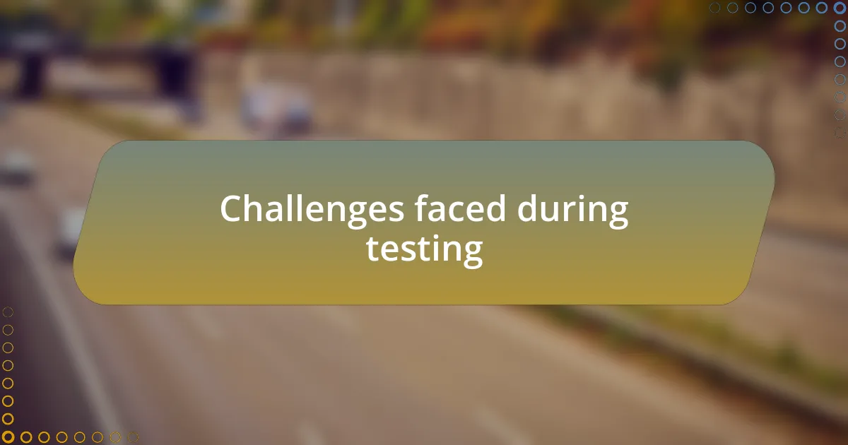 One of the most significant challenges I faced during testing was managing unexpected environmental variables. I remember one test where heavy rain unexpectedly rolled in, causing the software to struggle with object detection. This experience left me pondering: how well do we truly understand the software’s limitations in diverse weather conditions? It forced me to confront the reality that our ideal scenarios in the lab often don’t reflect the messiness of the real world.