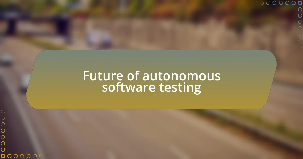 As I look ahead to the future of autonomous software testing, I can’t help but feel excited about the potential for artificial intelligence to enhance our testing processes. I vividly recall a scenario where a deep learning algorithm helped identify a rare bug in a navigation system that traditional testing methods overlooked. It made me wonder: could AI-driven testing soon provide insights that we haven’t even imagined yet?