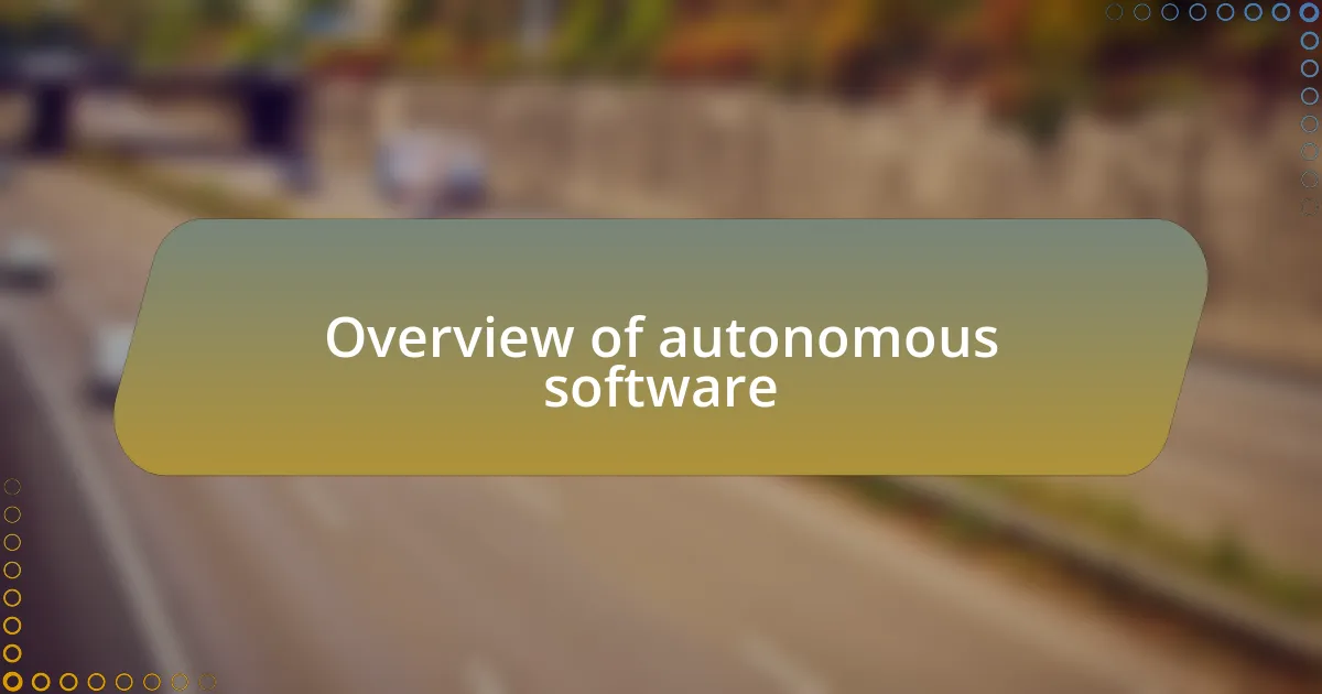 Autonomous software is a fascinating intersection of technology and innovation, designed to enable vehicles to navigate without human input. My first test of an autonomous car software was both thrilling and slightly nerve-wracking. Watching the vehicle make decisions on the road felt like stepping into a science fiction film, and I couldn’t help but wonder about the implications for our future transportation.