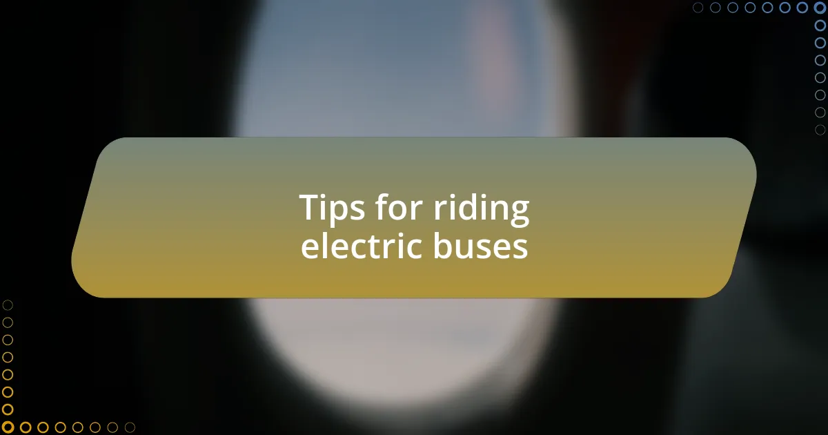 When I first stepped onto an electric bus, I was struck by how quiet it was compared to traditional buses. One tip I’d love to share is to pay attention to the different atmosphere; the serene ride can actually enhance your overall commuting experience. Sometimes, just enjoying the calmness helps me to focus and plan my day ahead.