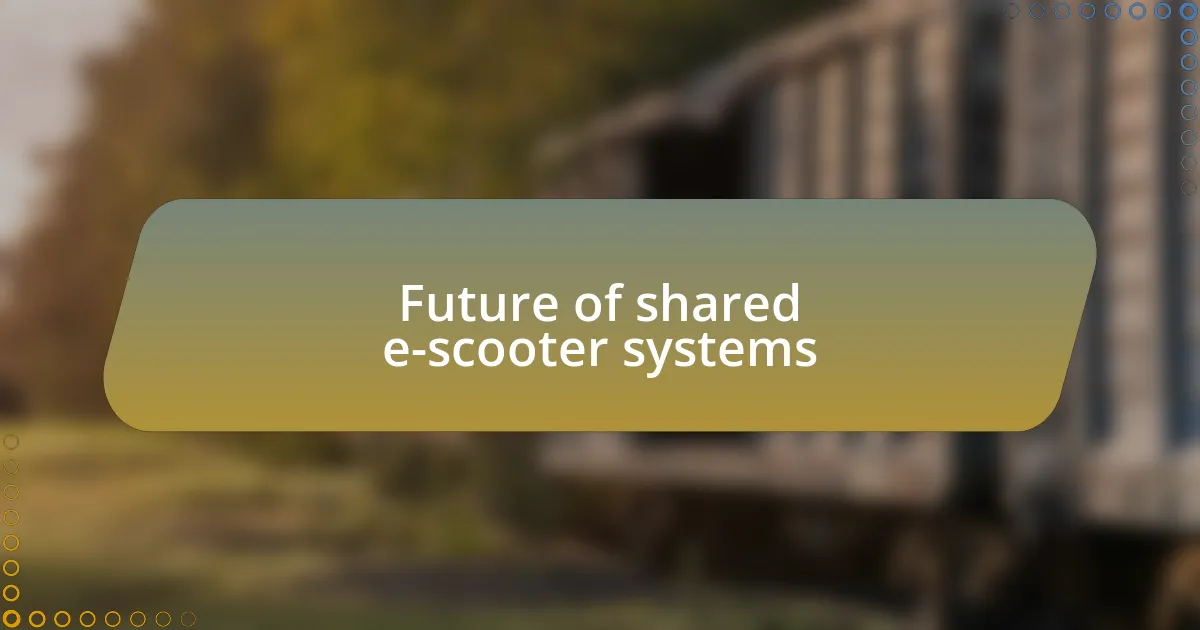 The future of shared e-scooter systems is brimming with potential. I envision a scenario where cities integrate dedicated e-scooter lanes, enhancing safety and streamlining traffic. Wouldn’t it be wonderful to glide along a path free of anxiety, knowing that both riders and pedestrians have designated spaces? It’s a step that could transform urban mobility significantly.