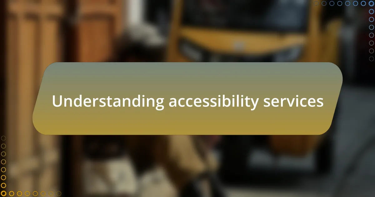 Accessibility services are designed to ensure that everyone, regardless of their abilities, can navigate and use transportation systems effectively. I remember visiting a city where I encountered a transit system that prioritized accessibility. The visual and auditory cues made me realize how important these features are for individuals with disabilities. How often do we take for granted the ease with which we move around?