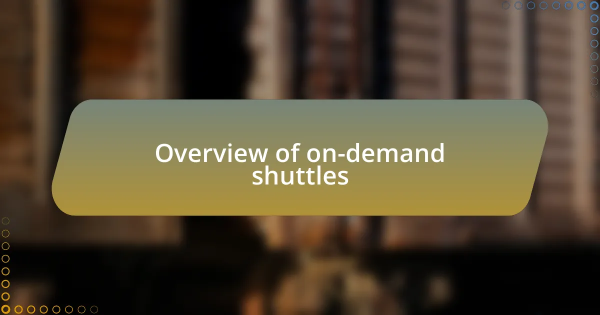 On-demand shuttles represent a dynamic shift in urban mobility, offering flexible transportation solutions that cater to users’ immediate needs. I recall one instance where I needed to get to a meeting on short notice, and instead of wrestling with parking or navigating public transit schedules, I simply requested an on-demand shuttle. The convenience of hailing a ride that arrived right at my doorstep felt liberating, clearly showcasing how adaptable these services are to the modern commuter’s unpredictable schedule.