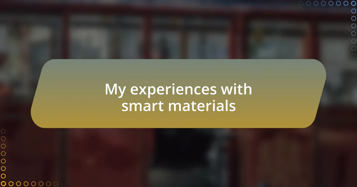 When I first encountered smart materials, I couldn’t shake the feeling of stepping into the future. During a recent project, I worked with electrochromic glass that changes tint based on sunlight exposure. The transformation was stunning; it felt like watching a building breathe. Have you ever been in a space that feels just right at any moment? That’s the power of these materials—they adjust and respond, creating environments that resonate with comfort.