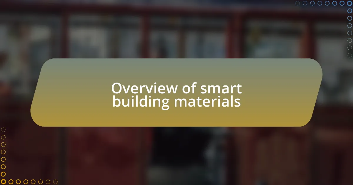 Smart building materials are an innovative subset of construction technology designed to enhance the performance and efficiency of buildings. During my exploration of these materials, I was fascinated to learn how they can respond to environmental changes, such as temperature and light, effectively creating a more comfortable living space. Can you imagine a building that can adapt to changing weather conditions? That idea alone sparks excitement.