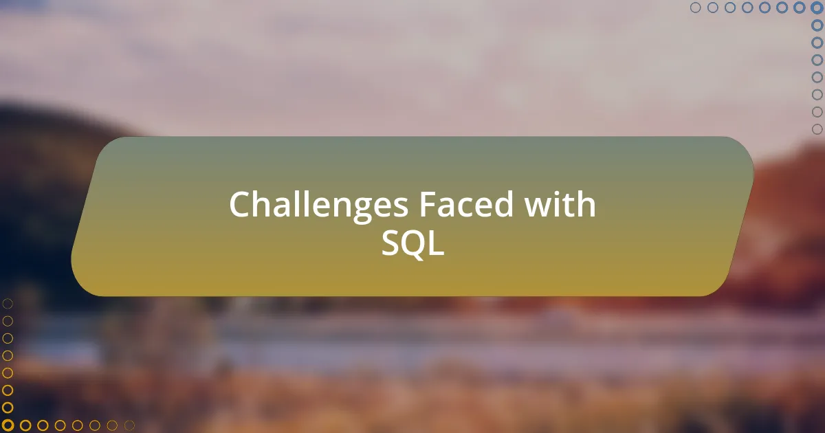 When working with SQL, one of the biggest challenges I encountered was handling large datasets. There were moments when I received queries that took ages to run, leaving me frustrated while I waited for results. Have you ever stared at a loading screen, wondering if the query was even worth the time? I learned the hard way that optimizing queries by indexing and refining where clauses is crucial, especially in a data-rich field like transportation.