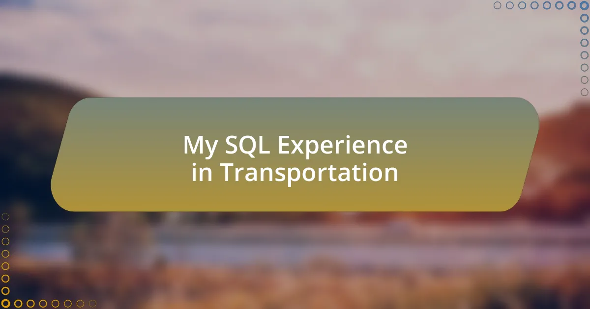 When I first started using SQL in the realm of transportation, I found myself fascinated by the sheer volume of data at our fingertips. One of my early projects involved analyzing real-time GPS data from buses. I vividly remember the exhilaration of writing complex queries to pinpoint delays and understand their root causes. It was thrilling to see how quickly we could address timing issues and improve route efficiency, all thanks to the insights derived from data.