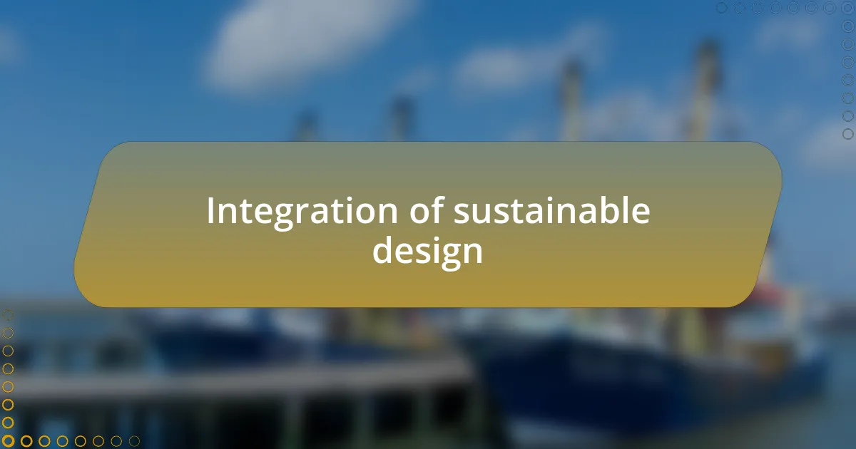 Integrating sustainable design into architecture isn’t just a trend; it’s a transformative approach that enhances urban life. I’ve witnessed how incorporating green roofs and living walls can drastically improve air quality in bustling cities. Have you ever taken a moment to breathe deeply in a well-designed, green space? It’s remarkable how nature can reclaim its place amidst concrete and steel.