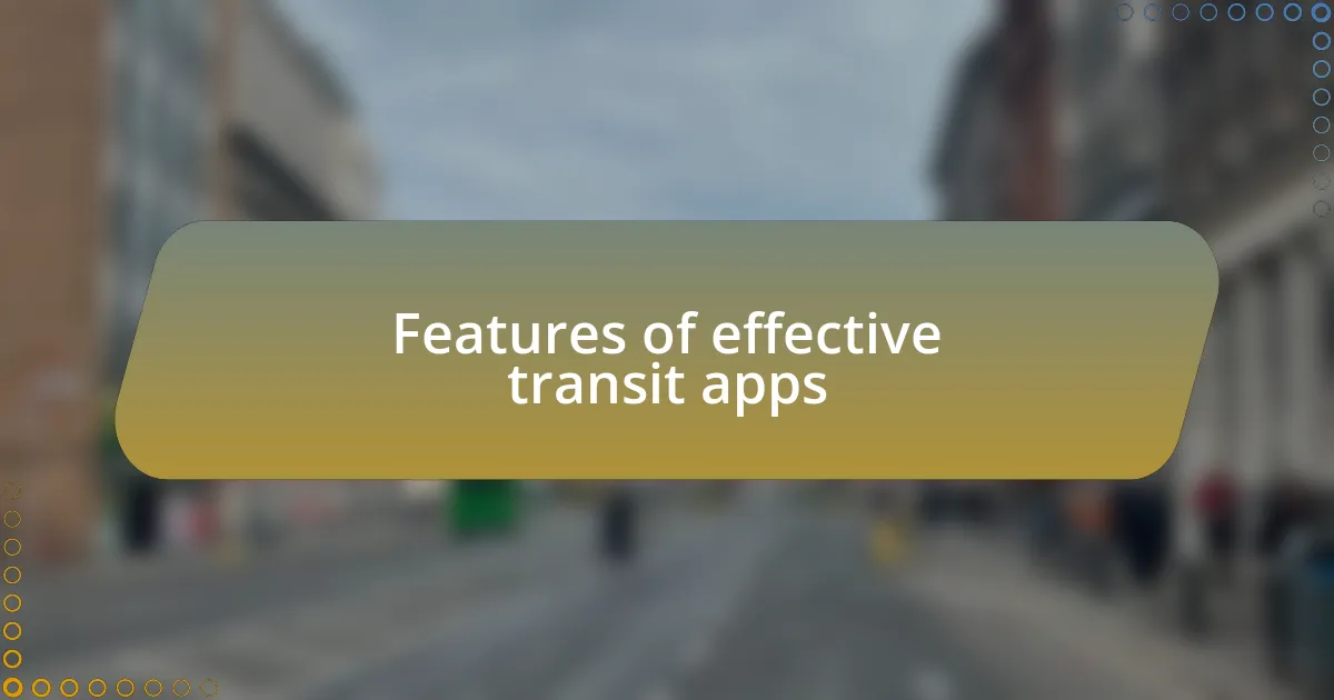 Effective transit apps are characterized by their real-time tracking capabilities, allowing users to know exactly when their bus or train will arrive. I remember the relief I felt when I first used an app that showed live updates; I was able to choose a nearby café to wait instead of standing idly at the station. Have you ever faced the uncertainty of waiting without knowing when your ride would come? It’s a game-changer to have that information at your fingertips.
