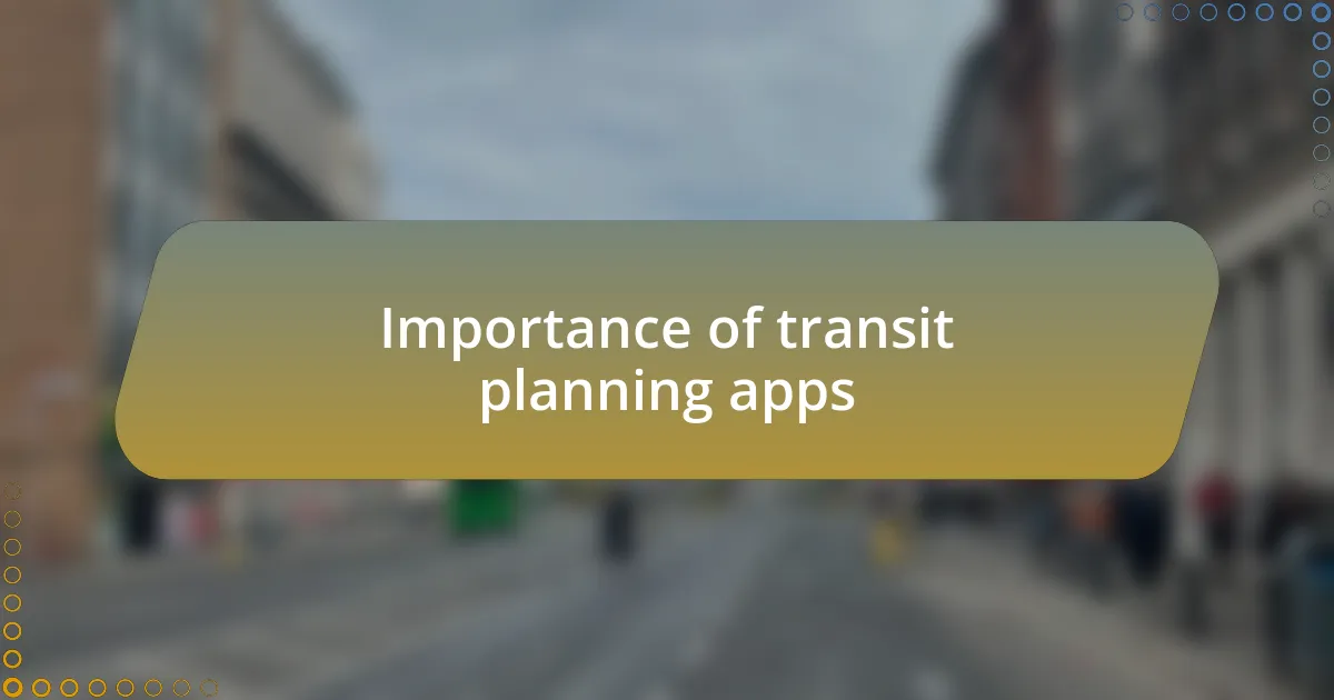 The role of transit planning apps cannot be understated; they act as a lifeline for those navigating complex transportation systems. I remember the first time I used an app to plan my commute. With just a few taps, I avoided a long delay—this experience made me realize how empowering information can be. These apps provide users with real-time updates and route alternatives, essentially putting the power of data directly into our hands.