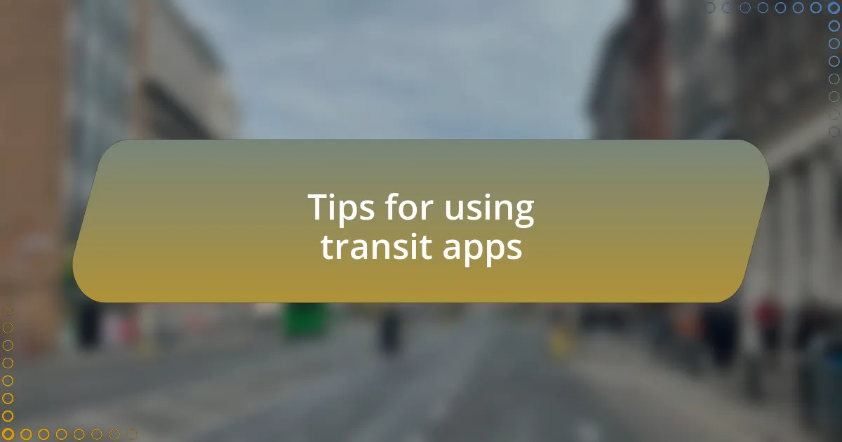 When using transit apps, one tip that has consistently worked for me is to familiarize yourself with the app’s features before you actually need them. I remember the first time I opened a particular transit app in a hurry—frantically trying to find a route during rush hour. I stumbled upon a feature that allowed me to save favorite routes, which saved me a lot of stress on my subsequent journeys. Have you ever been caught off guard by an unfamiliar interface? Knowing your way around the app can make a significant difference.
